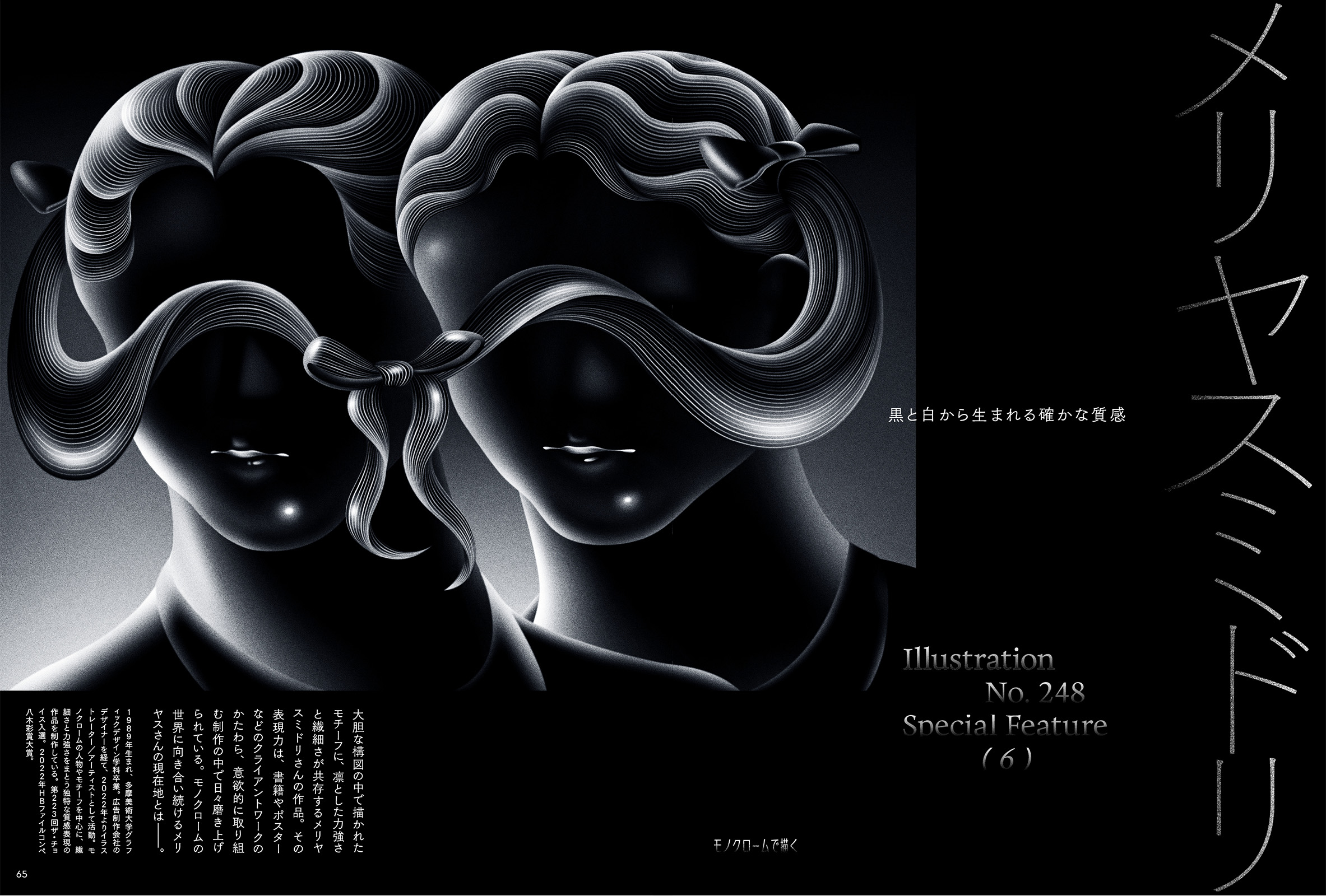 今回の特集では白と黒で描かれるモノクロームのイラストレーションに着目し、計6名の作家を取材。色を制限された作品だからこその強さや、1色を用いて自らのオリジナリティをどのように表現しているかについて取材した。