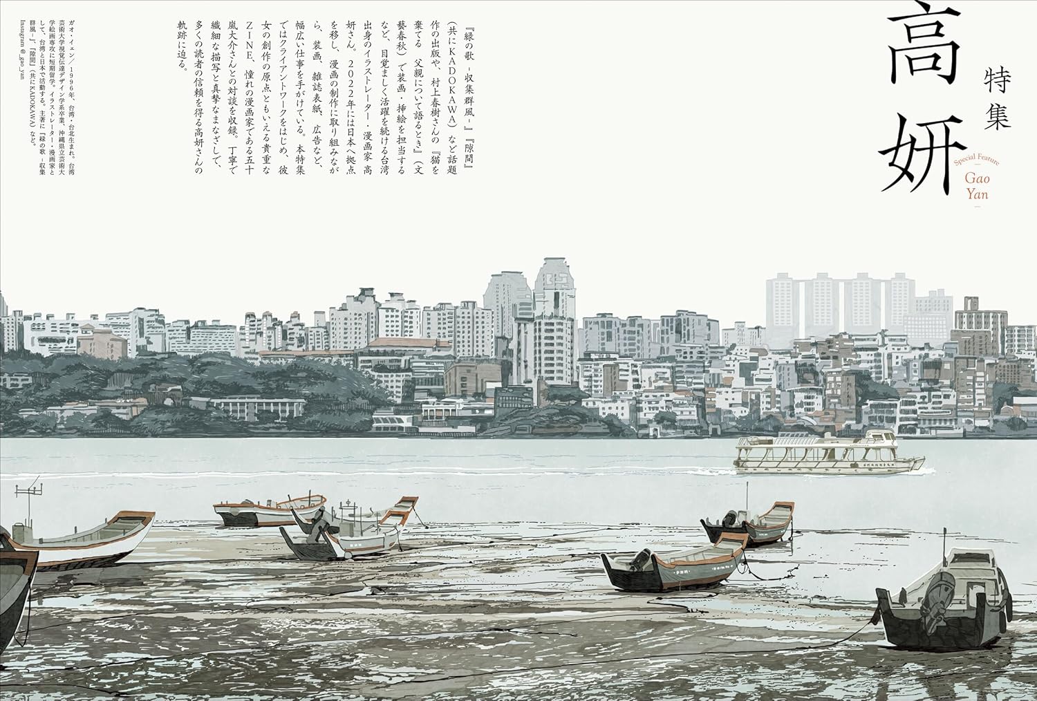 イラストレーター・漫画家として活躍する高妍さんを大特集します。商業デビュー作『緑の歌ー収集群風ー』や『隙間』、村上春樹さん著『猫を棄てる 父親について語るとき』の装画・挿絵をはじめとしたクライアントワークを多数掲載します。クライアントとイメージをすり合わせる「ラフ」も特別公開。