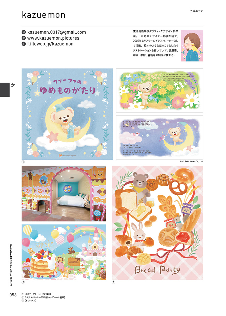 児童書・絵本・雑貨・書籍・年賀状など、大人から子ども向けまで幅広いイラストに携わっています。