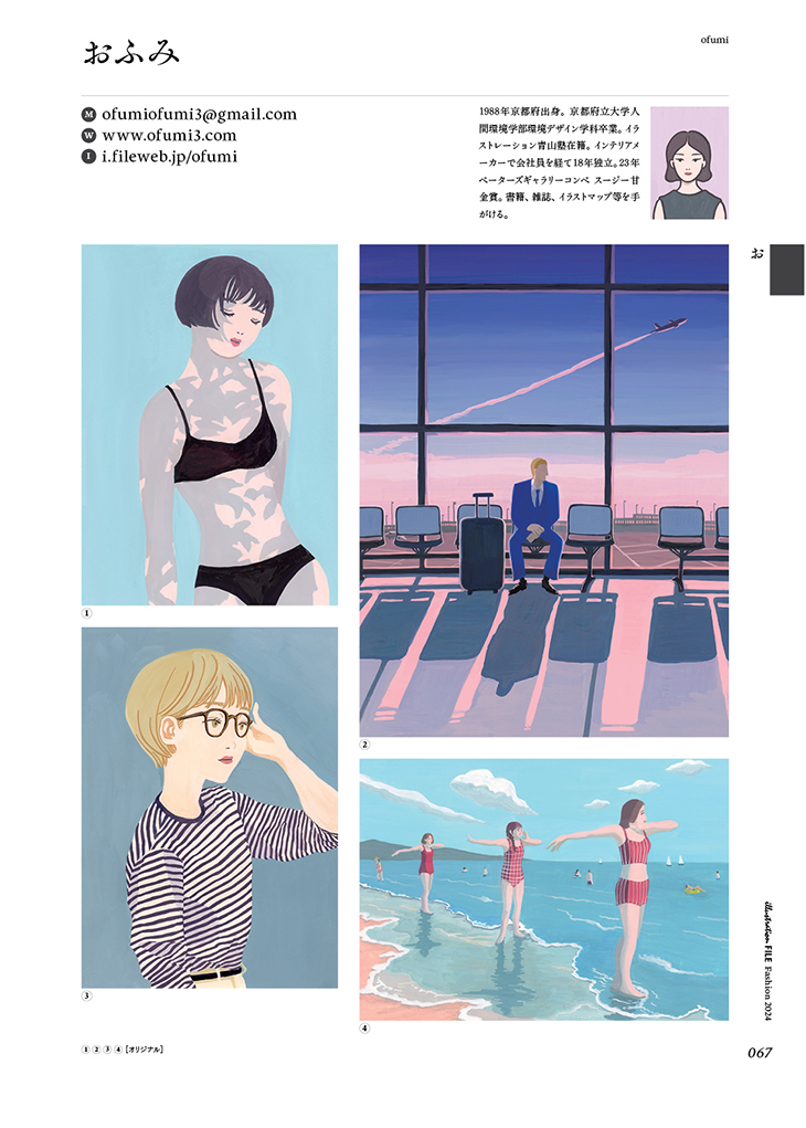 イラストレーターのおふみです。すこし・ふしぎな物語のある、情感溢れるイラストを描きます。人物や風景、インテリアや街歩きマップなどのイラストを得意としており、書籍、イラストマップ、雑誌等を手掛けています。